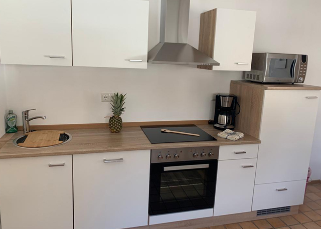Küche mit Kaffeemaschine, Spülmaschine, Mikrowelle usw.